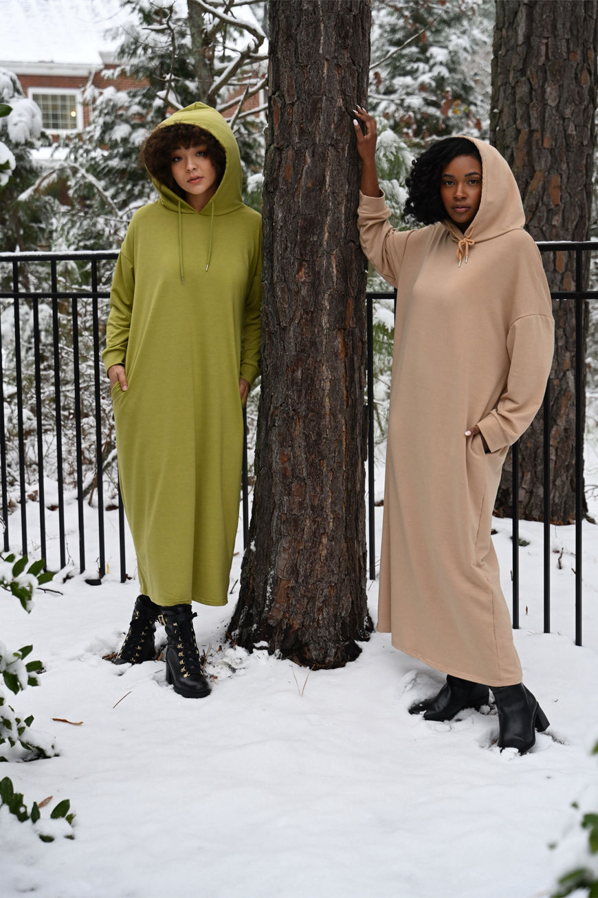 Designed thoughtfully with ample room, this super comfy and stylish piece is perfect for lounging in or running errands—a must have addition for when you're on the go. Combining faith, Style and functionality, this piece comes with a hood and pockets for added convenience. Whether you're aiming for a laid-back look or a modern edge, this jumper dress delivers with ease. Get yours today!